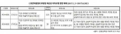 À¯¾ÈŸ(µ¿¾çÁõ±Ç)ÀÇ °æ¿ì »ó¹Ý±â¿¡¸¸ 3¹øÀÇ Á¦À縦 ¹Þ¾Ò´Âµ¥ 2°ÇÀº ºÎ´çÇÑ Àç»ê»ó ÀÌÀÍ ¼ö·É ±ÝÁö À§¹ÝÀ̶ó´Â ÇâÀÀ¡¤³ú¹° ¶§¹®¿¡ Á¦À縦 ¹ÞÀº °ÍÀÌ´Ù. 1°ÇÀº ÀÏÀӸŸŠÀ§¹Ý ¹× ÁÖ¹®±â·Ï À¯ÁöÀǹ« À§¹ÝÀ̾ú´Ù. À¯¾ÈŸÁõ±ÇÀº µ¿¾ç»çÅÂÀÇ ´ç»çÀÚÀÎ °ú°Å µ¿¾çÁõ±ÇÀÌÁö¸¸, ¾ÆÁ÷µµ ºñÁ¤»óÀû ¿µ¾÷ÇàŸ¦ Áö¼ÓÇϰí ÀÖ´Â °ÍÀ¸·Î º¼ ¼ö ÀÖ´Ù.