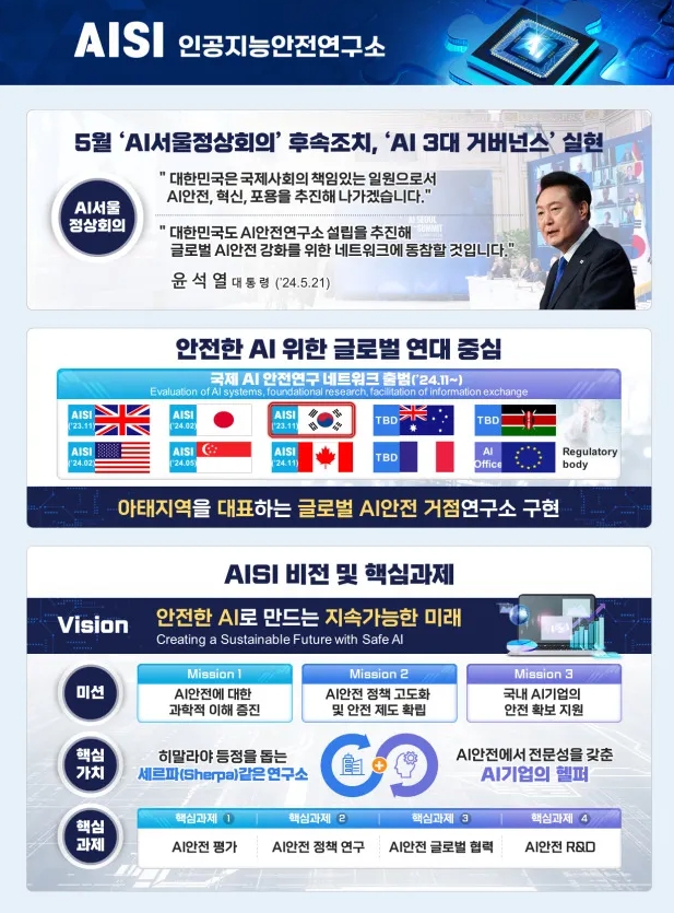 AI ¾ÈÀü¿¬±¸¼Ò´Â »ê¡¤ÇС¤¿¬ ±â°ü °£ÀÇ Çù·Â°ú Á¤º¸ ±³·ù¸¦ À§ÇÑ Çãºê ¿ªÇÒÀ» Çϸç, ÇöÀç ¹Ì±¹°ú ÀϺ» µî 10°³±¹ÀÌ Âü¿©ÇÏ´Â '±¹Á¦ AI ¾ÈÀü¿¬±¸¼Ò ³×Æ®¿öÅ©'ÀÇ ÀÏ¿øÀ¸·Î Ȱµ¿ÇÏ°Ô µÈ´Ù.