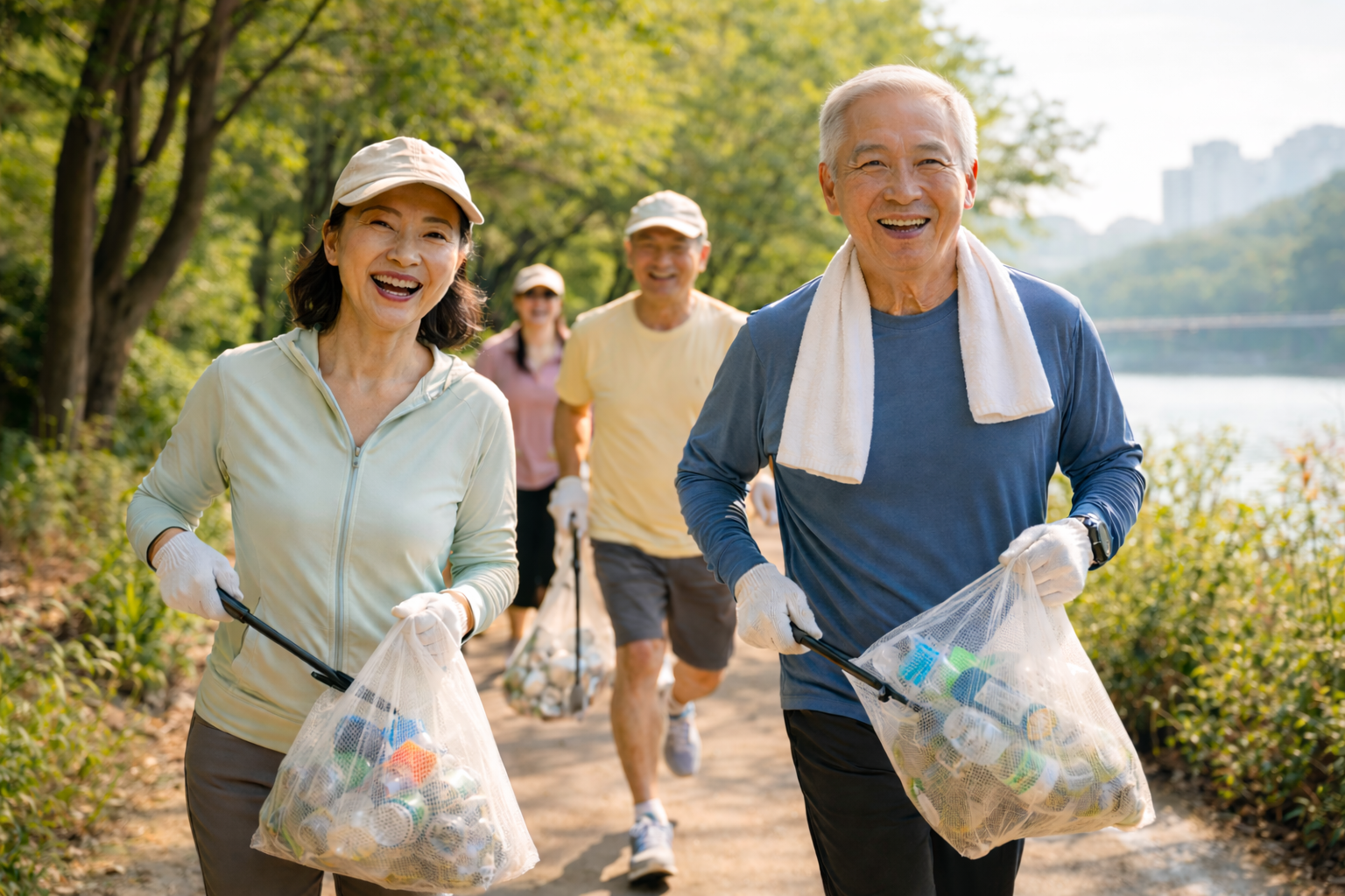 Æí¾ÈÇÑ ·¯´×º¹À» ÀÔÀº »ç¶÷µéÀº Æí¾ÈÇÑ ¼Óµµ·Î Á¶±ëÇϰí, °¡²û ¹ö·ÁÁø ÄÅÀ̳ª ÇÃ¶ó½ºÆ½À» ÁÖ¿ö µé°í, ÇÔ²² ¾ÕÀ¸·Î ³ª¾Æ°©´Ï´Ù. À̰ÍÀÌ ¹Ù·Î Ç÷α×(plogging)·Î, ¿îµ¿°ú ȯ°æ °ü¸®°¡ °áÇÕµÈ ´Ü¼øÇÑ È°µ¿À¸·Î,